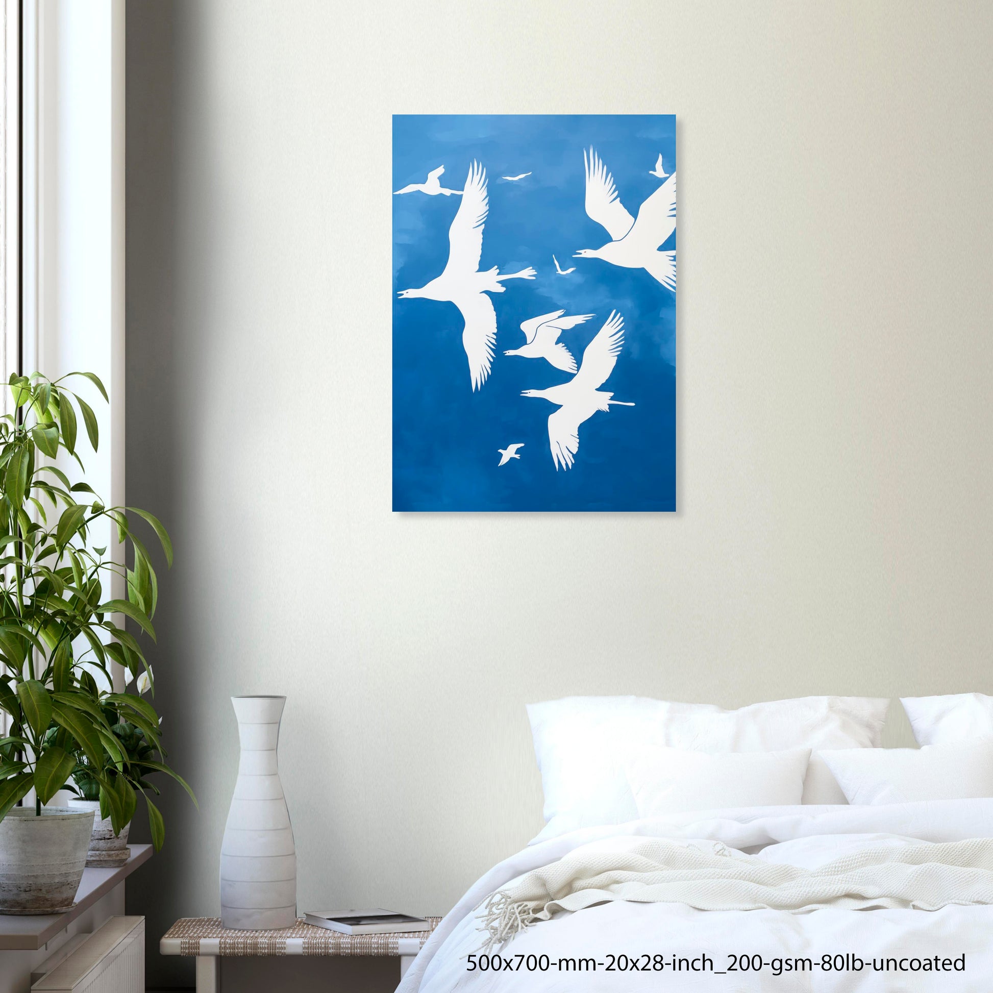 Blue Flight – Poster de pájaros blancos en azul