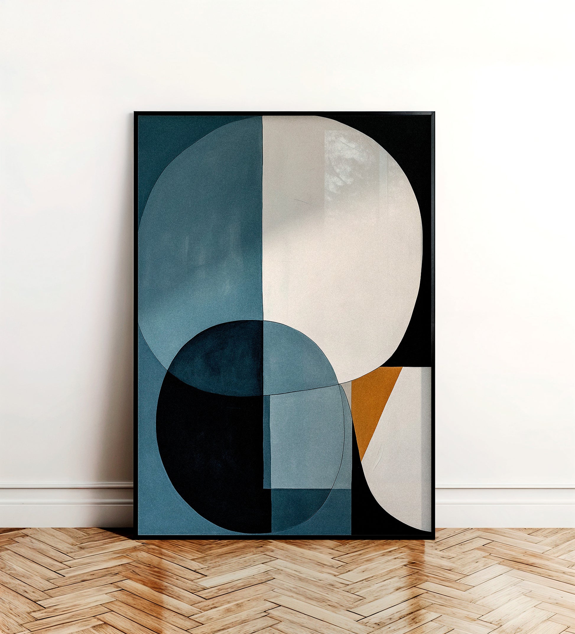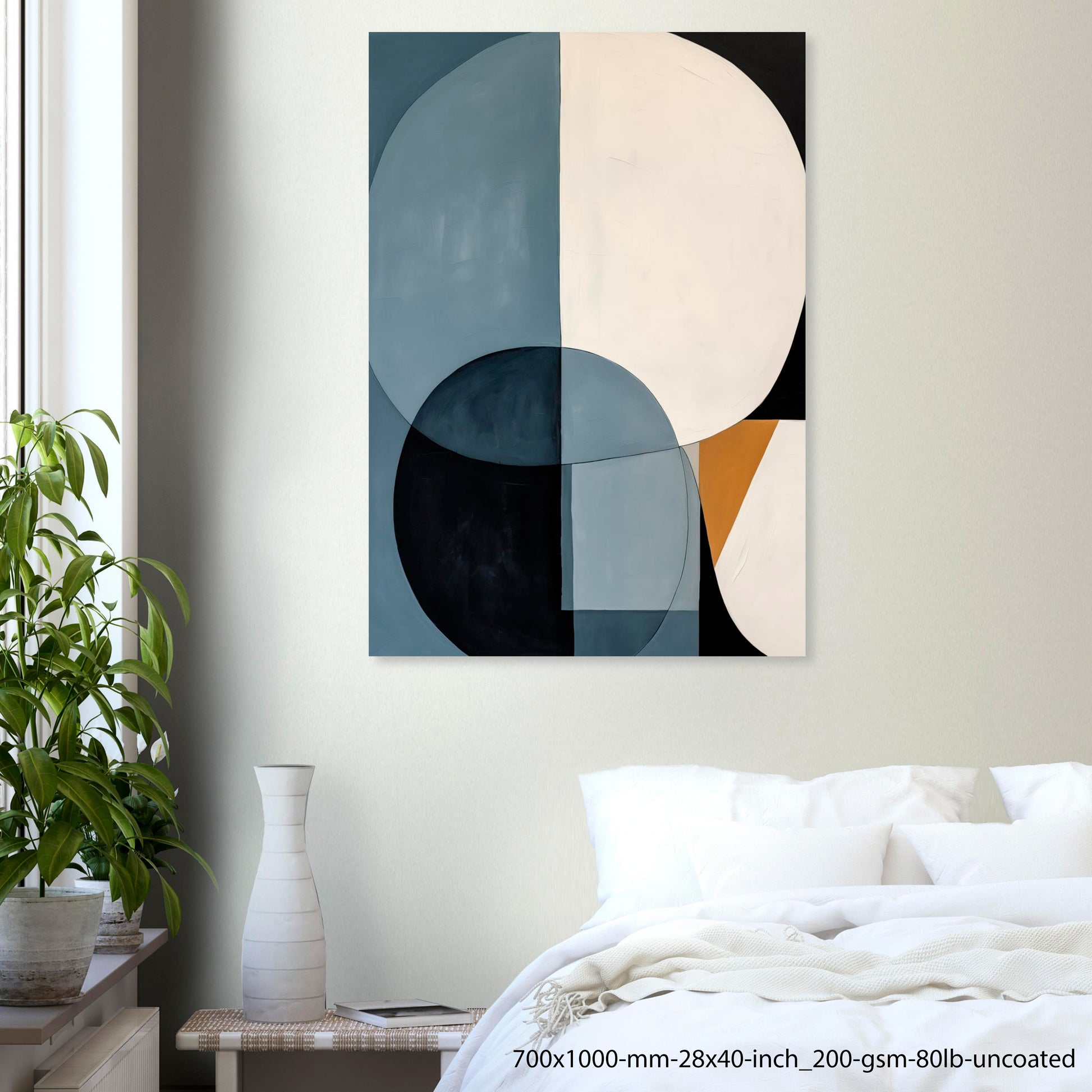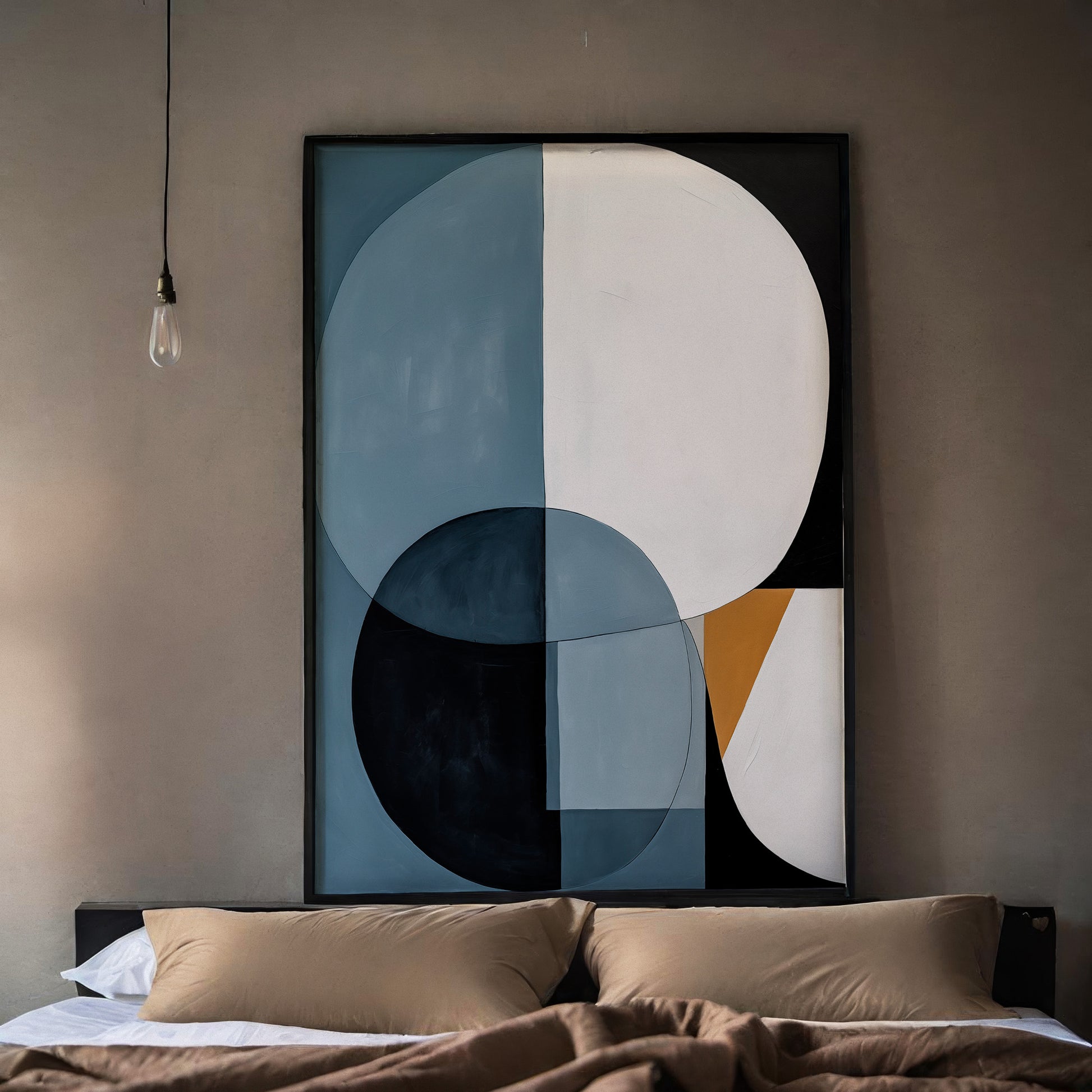 Círculos y bloques geométricos en paleta neutra crean una composición equilibrada y atemporal. Un poster que transmite orden, serenidad y elegancia moderna.