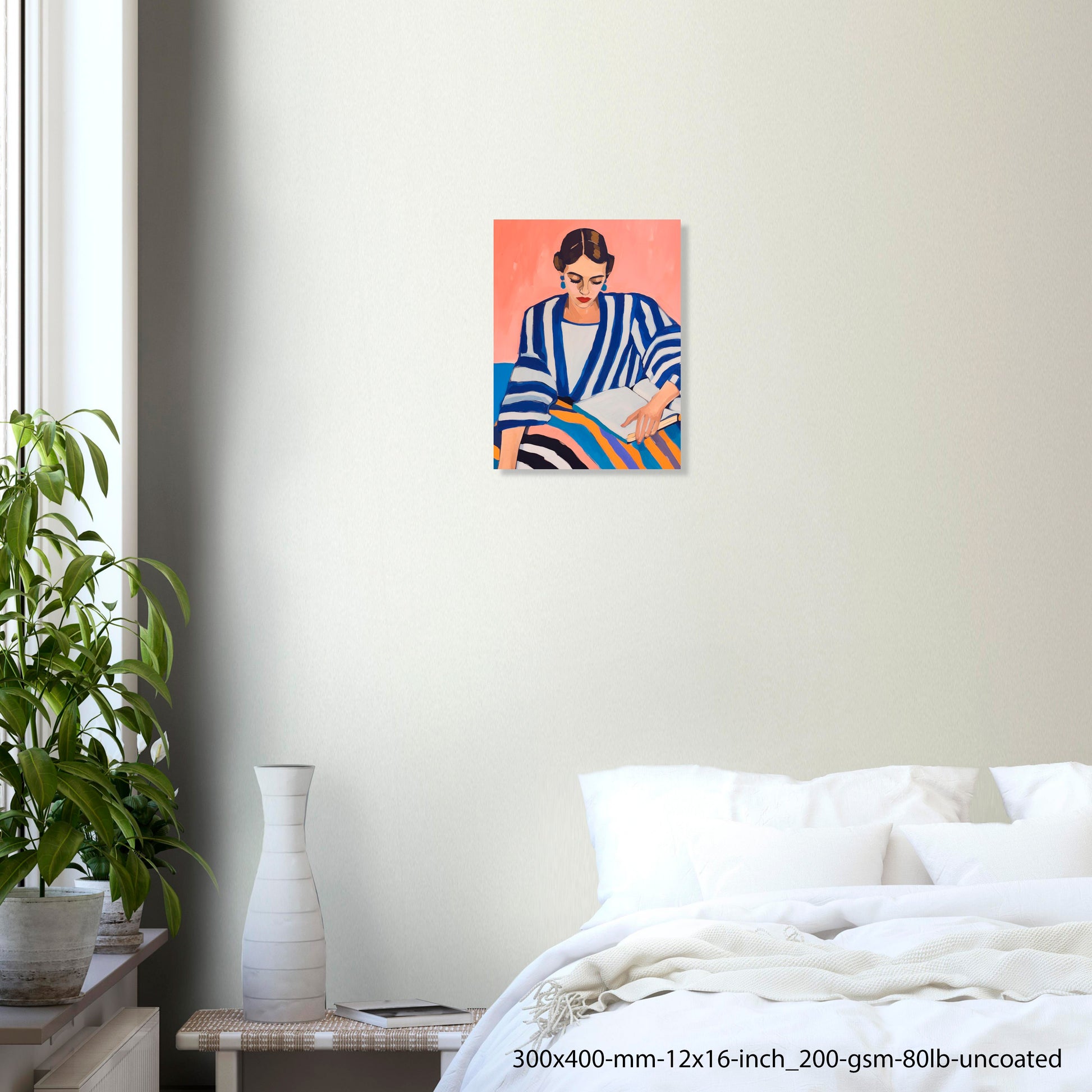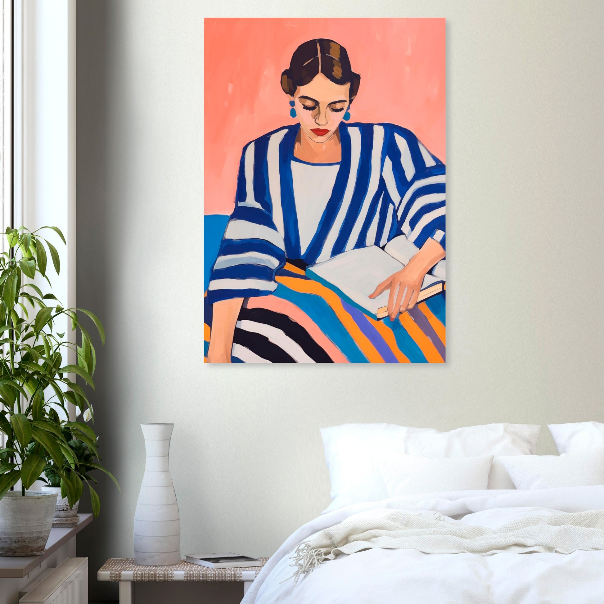 poster mujer con libro, retrato artístico, ilustración editorial, arte femenino moderno, wall art retrato